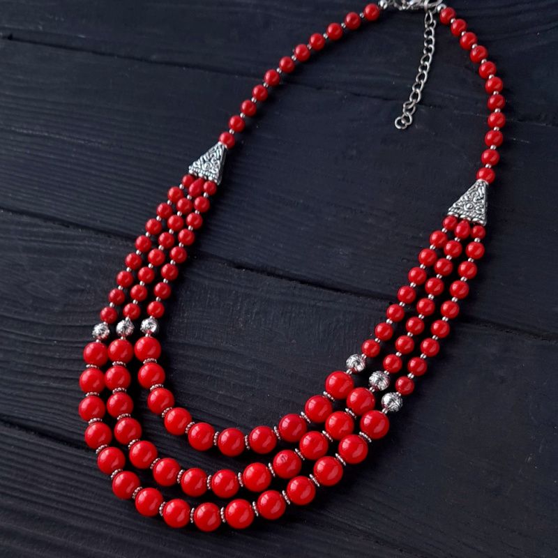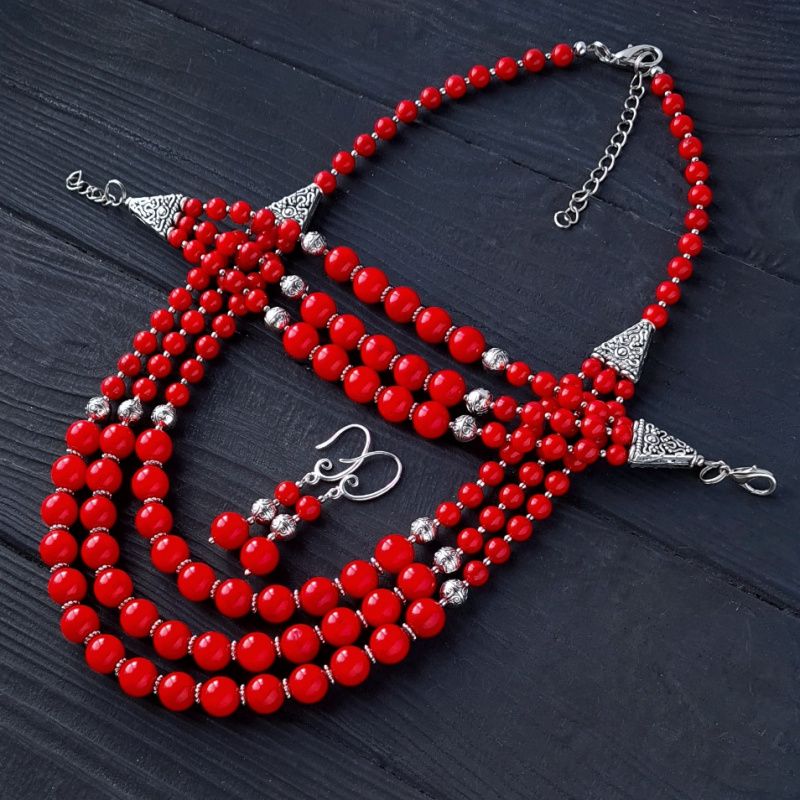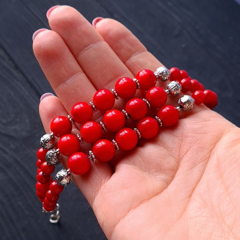 Комплект украшений из натуральных кораллов: ожерелье трехрядное и браслет. Украшения из натуральных кораллов – это прекрасный подарок для жены, женщины, мамы на день рождения, юбилей, день влюбленных, 8 марта, коралловая свадьба и просто, чтобы напомнить, как сильно вы любите :) На кораллах есть крапинки, черточки и дырочки, что и является признаком натуральности, и придает особый шарм украшениям и ощущению живого камня. Если вам нужно идеальное ожерелье – заказывайте его по имитации коралла или стеклянных бусин. Стоимость указана за комплект , как на фото: ожерелье длиной 45 см по обхвату шеи верхний ряд плюс 1-2 см каждый последующий ряд браслет ( длина согласовывается после покупки). Длина бусы и браслета также регулируется с помощью удлинительной цепочки. По заказу я делаю любую длину бусы или браслета, нужную вам. Стоимость будет перечислена в соответствии с требуемой вам длиной. Украшения можно заказать по отдельности. На последнем фото есть серьги с серебряными застежками, которые не входят в стоимость, но могут быть заказаны отдельно. Можно заказать у серебра 925 пробы.