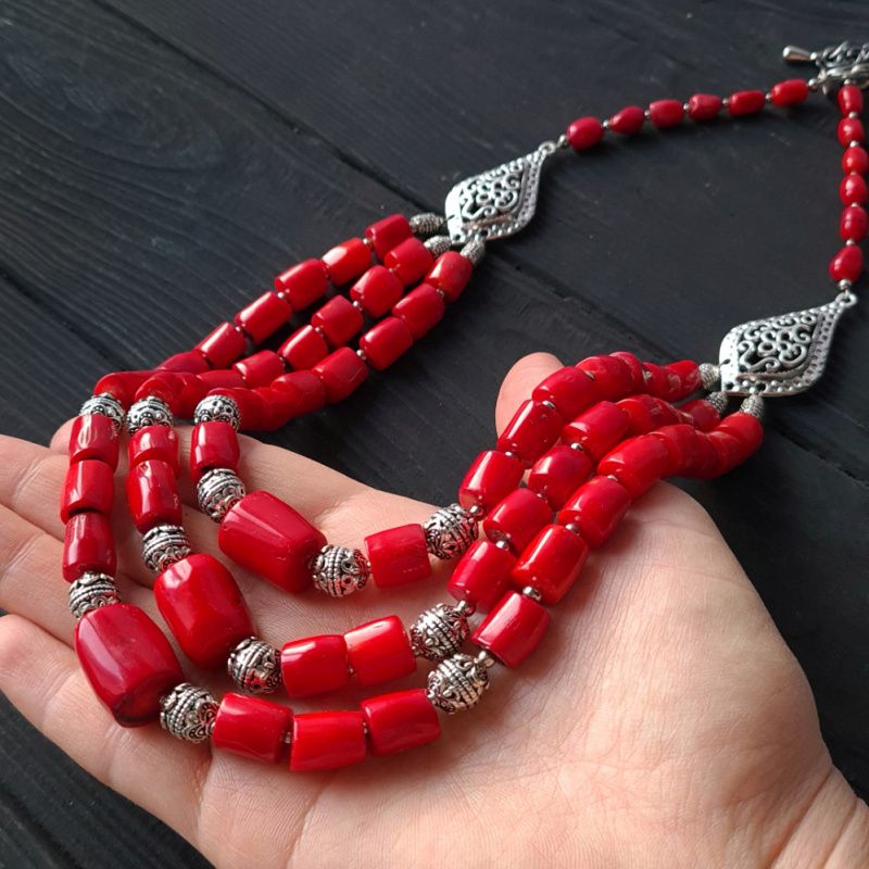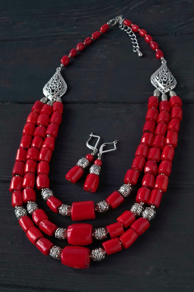 Комплект украшений из натуральных кораллов: ожерелье трехсерное и серьги Застежки сережек: серебро 925. На кораллах есть крапинки, рисочки и дырочки, что и является признаком натуральности, и придает особый шар украшениям и ощущению живого камня. Если вам нужно идеальное ожерелье - заказывайте его с имитации коралла или стеклянных бусин. Стоимость указана за комплект , как на фото: ожерелье длиной 45 см по охвату шеи верхний череда 1-2 см каждый последующий ряд и серьги. Длина ожерелья также регулируется с помощью удлинительной цепочки. По заказу я делаю любую длину ожерелья, нужную вам. Стоимость будет перечислена в соответствии с требуемой вам длиной. Украшения можно заказать по отдельности.