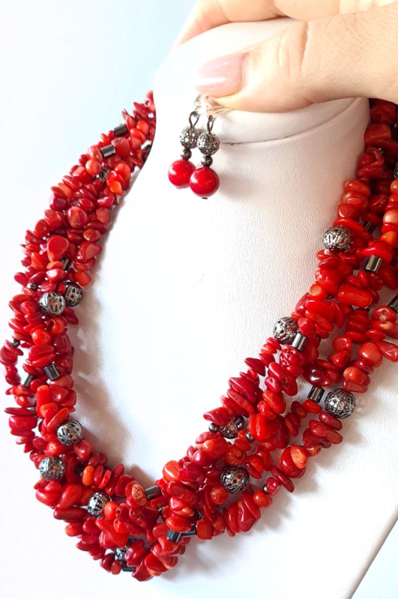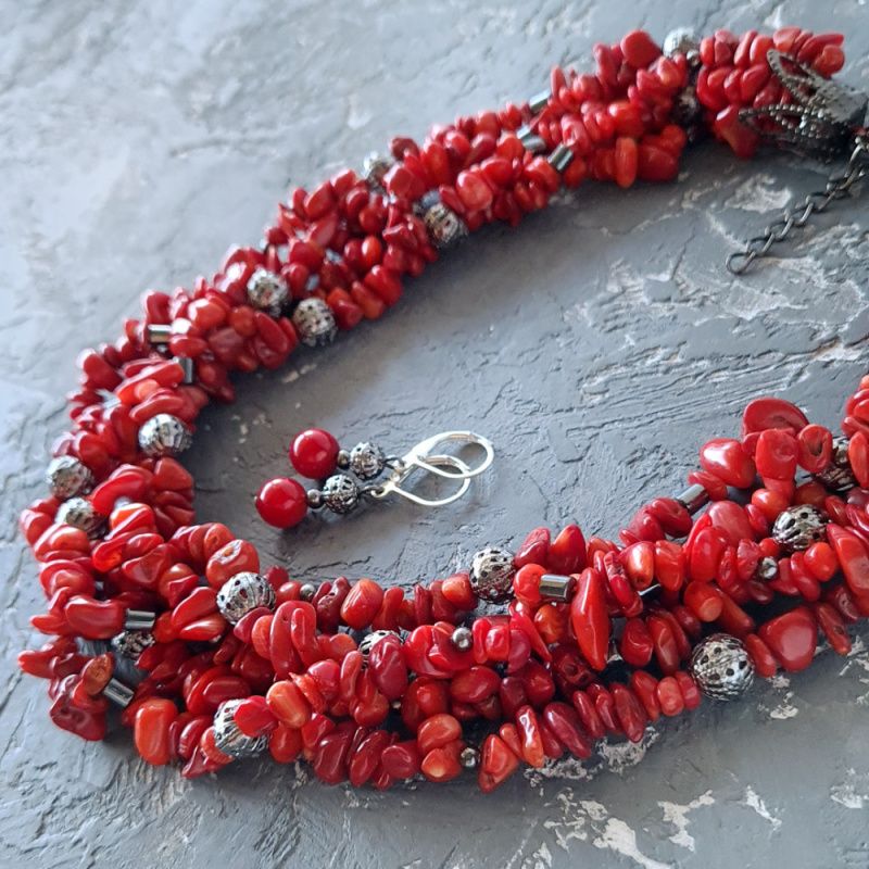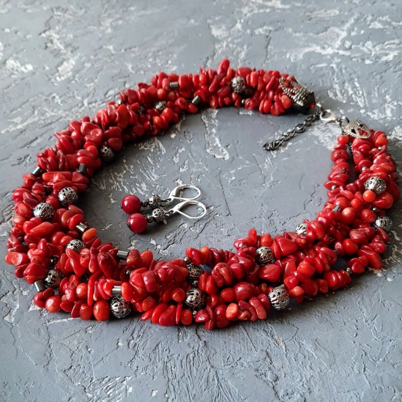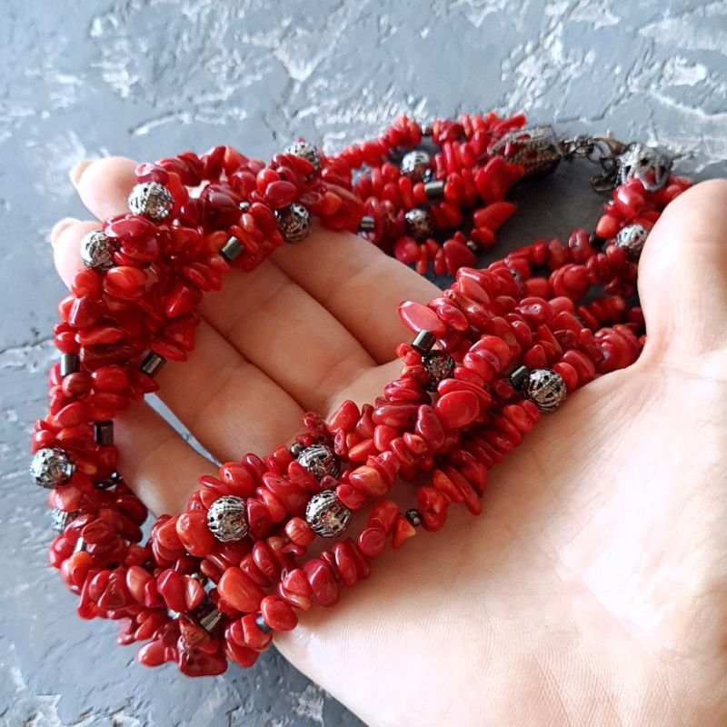 Комплект украшений из натуральных кораллов и гематита: Семирядне ожерелье и серьги. Пышное красное ожерелье и серьги из кораллов -прекрасный подарок для вашей подруги, женщины, невесты, сестры, мамы на день рождения, на коралловая свадьба, или просто, чтобы порадовать любимого человека. Стоимость указана за комплект, где длина ожерелья 45 см + 5 см удлиняющий цепочку и серьги. На заказ- любая другая, нужна вам длина ожерелья. Стоимость будет пересчитана в соответствии с нужной вам длины. Есть продажа украшений отдельно. В комплект могу также сделать браслет на 3 или 5 низок.