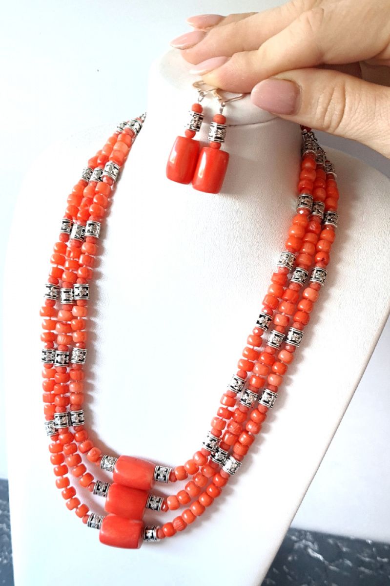 Комплект из натуральных кораллов ожерелье и серьги "Наследие-3"
