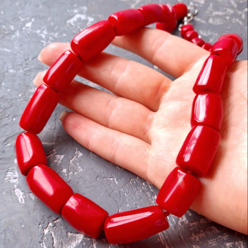 Ожерелье с огромными натуральными кораллами по центру, перенизане в узелковой технике, под старинное ожерелье. Ожерелье выполнено на заказ. Могу сделать похоже ожерелье для вас, учитывая ваши пожелания по размерам кораллов и длине ожерелья. Красивое ожерелье под вышиванку, белую или черную блузку, платье или даже обычную рубашку - прекрасный подарок вашей женщине, жене, подруге, маме, сестре на день рождения или 8 марта. Стоимость указана за ожерелье, длиной 45 см. На конце имеется удлинительный цепочку +5 см, чтобы вы самостоятельно могли регулировать длину ожерелья. По заказу могу сделать любую другую, нужную вам длину. Стоимость будет перечислено по нужной вам длины. Также можно заказать с застежкой в серебре 925 пробы. К бусы в комплект могу сделать также серьги или браслет.