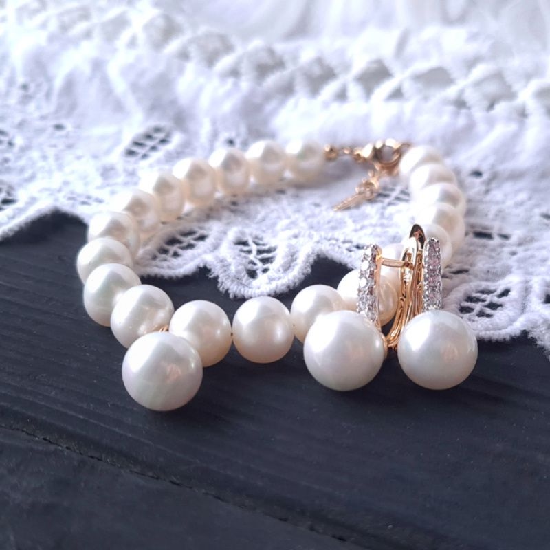 Позолоченные серьги с натуральным жемчугом высокого класса и кристаллами циркона. Серьги с натуральным жемчугом – роскошный подарок к праздникам для той, которую любишь. Застежки сережек - медицинская сталь, позолота по латуне, инкрустированные сияющими кристаллами циркона, как бриллианты. Тип застёжки: английский замок. Общая длина серег: 20 мм. Размер жемчужин: 11 мм. На других фото есть браслет, не входящий в стоимость, но может быть заказан отдельно.