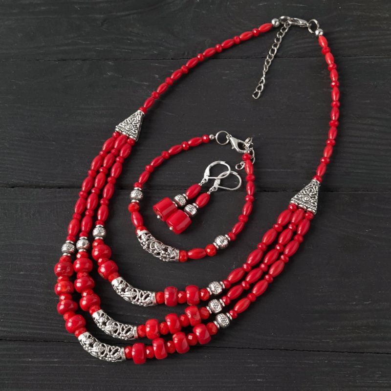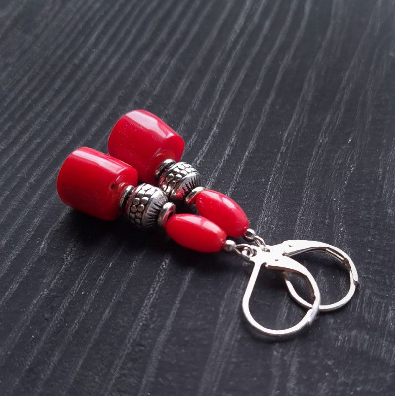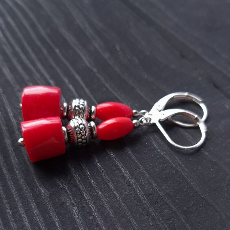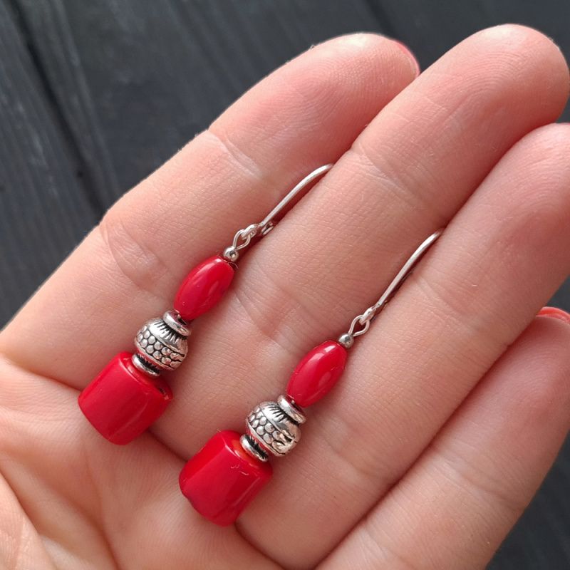 Серьги с натуральными кораллами и узором. Застежки сережек - серебро 925 пробы. Длина сережек 45 мм. На других фото является ожерелье. что не входит в стоимость, но может быть заказано отдельно. Вы также можете заказать ожерелье, браслет или кулон в сережек - на ваш вкус.