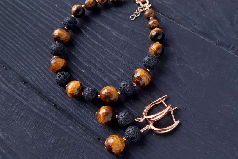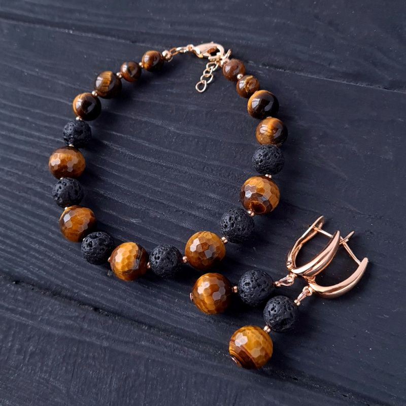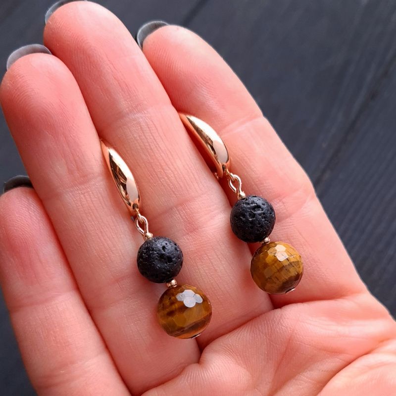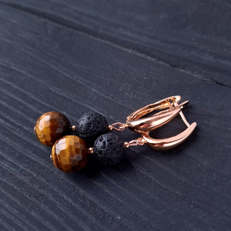 Стильные серьги из натуральных камней тигриный глаз ювелирной огранки и вулканическая лава – идеальный подарок на новый год Тигра 2022. Украшения из натуральных камней тигриного глаза дополнят праздничный образ каждой женщины, жены, девушки, мамы. Застежки сережек – качественная позолота по латуне, не вызывающая аллергии или раздражения. Тит застежки: Английский замок. Общая длина серьг: 40 мм. Классическое сочетание черного, коричневого и золотого – для женщины, которая любит лаконичность и четкость форм. Украшения с изюминкой и уникальным шармом. Стоимость указана за серьги как на фото. На других фото есть браслет, не входящий в стоимость, но может быть заказан отдельно. К серьгам также могу сделать кулон на цепочке или ожерелье по вашим пожеланиям.