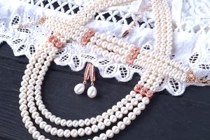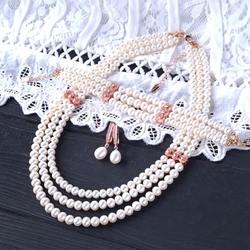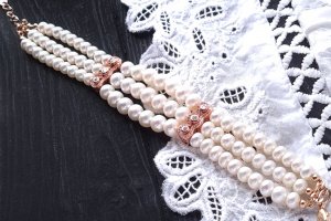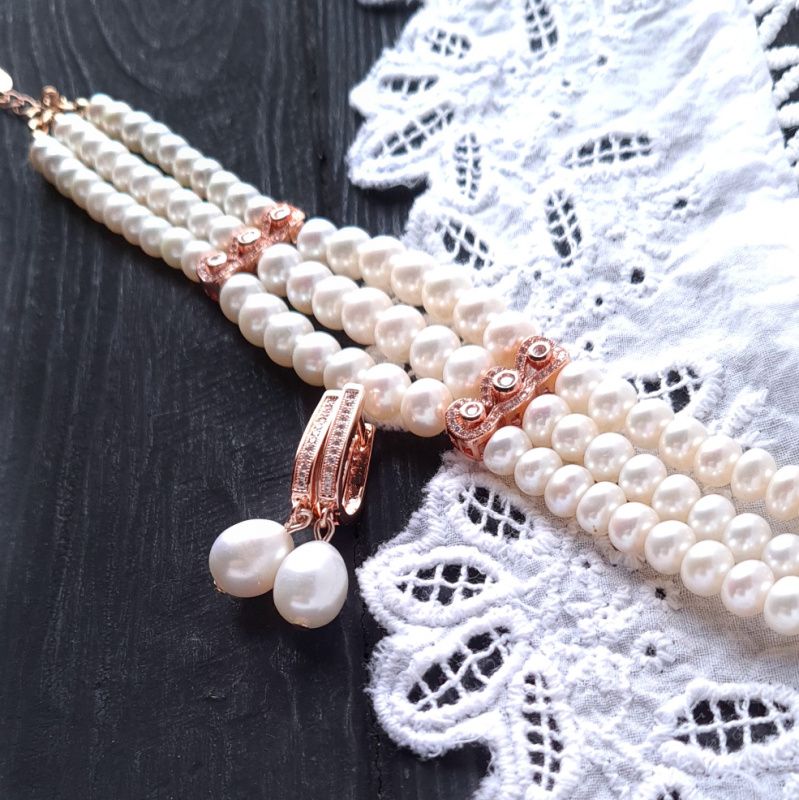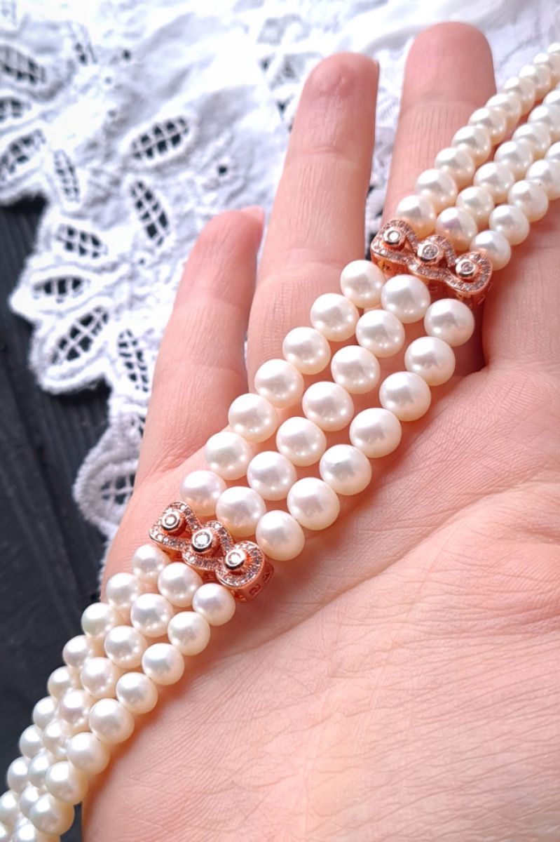 Роскошный трехрядный браслет из натурального жемчуга 2 видов. по центру размером около 7 мм, по краям около 5.5 мм. Браслет украшен кристаллами циркона, сияющими, как бриллианты. Стоимость указана за браслет на фото, длиной до 18 см включительно. Застежка магнитная – ее удобно одевать даже самой себе, к тому же она аккуратнее и самая маленькая, чтобы в браслете было больше жемчуга, а не карабин и удлинитель. Длину делаю нужную вам (согласуем после оформления заказа). На последних фото есть бусы и серьги, которые даны для примера. Вы также можете заказать браслет в комплект серьги, колье, брошь - аналогичного или иного дизайна, который есть в моем магазине.