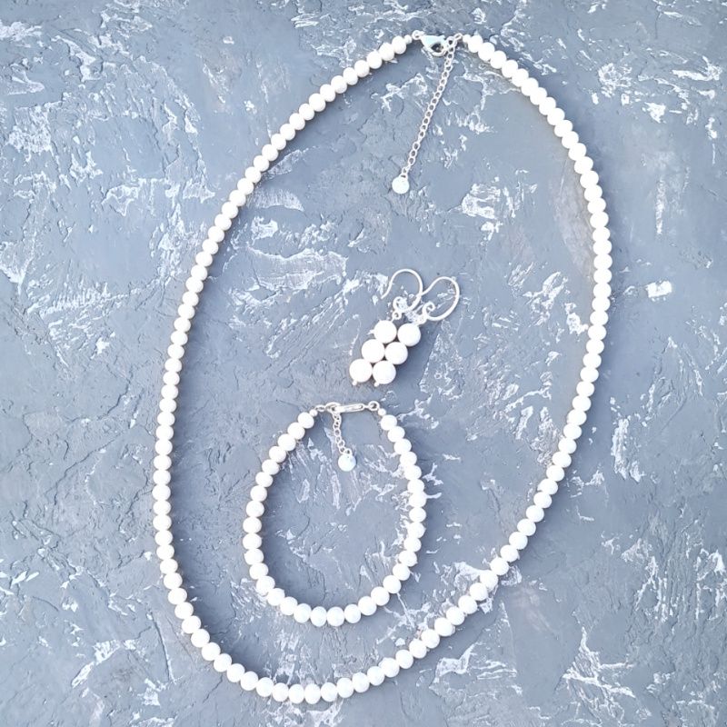Комплект украшений из крупных натурального жемчуга: ожерелье, браслет и серьги. Фурнитура: серебро 925 пробы. Размер жемчужин в ожерелье и браслете 6-5 мм (по центра- больше, по краям - меньше). Размер жемчужин в сережках: 7 мм. Я делаю любые размеры, необходимые заказчику (длина ожерелья и браслета, количество жемчужин в сережках). Стоимость указана за комплект как на фото, где длина ожерелья до 40 см включительно, длина браслета до 20 см включительно, и серьги. По заказу я делаю любую, необходимую покупателю длину ожерелья и браслета. Стоимость будет пересчитана в соответствии с длиной, необходимой заказчику. Можно приобрести комплект без сережек или без браслета. При покупке всего комплекта вместе вы экономите 10%, если бы вы покупали те же украшения, но по отдельности.