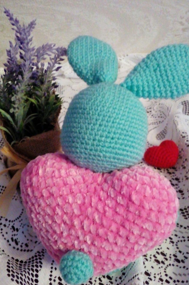 Пряжа плюшевая для сердечка,100% акрил сам зайчик Наполнитель холофайбер Глаза и носик на безопасном креплении