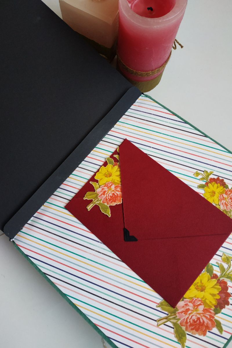 Дополнительно к альбому идет конверт с плотной дизайнерской бумаги и специальный клей для фото.