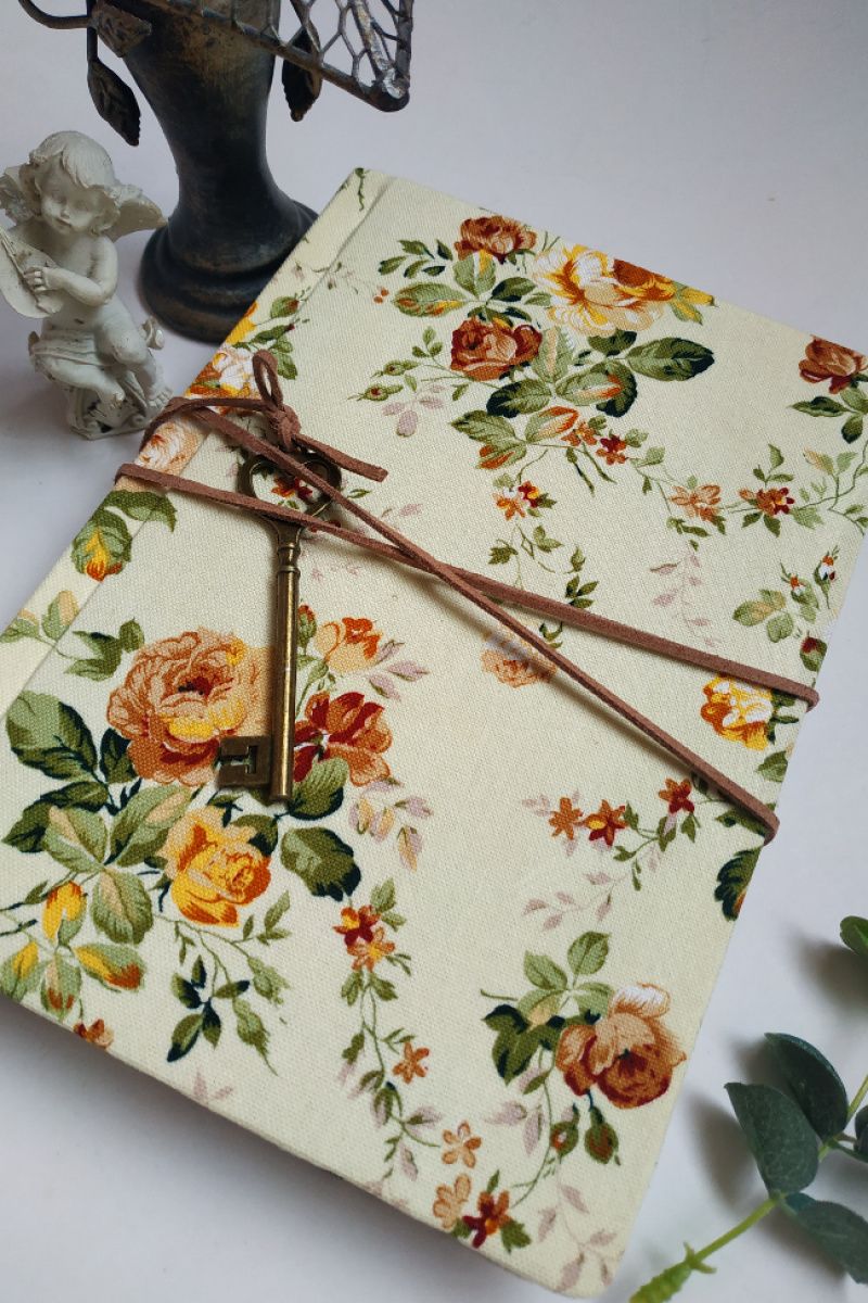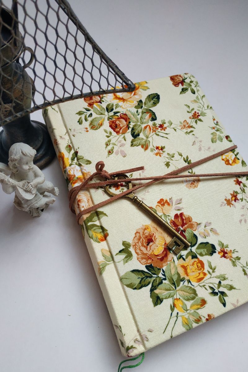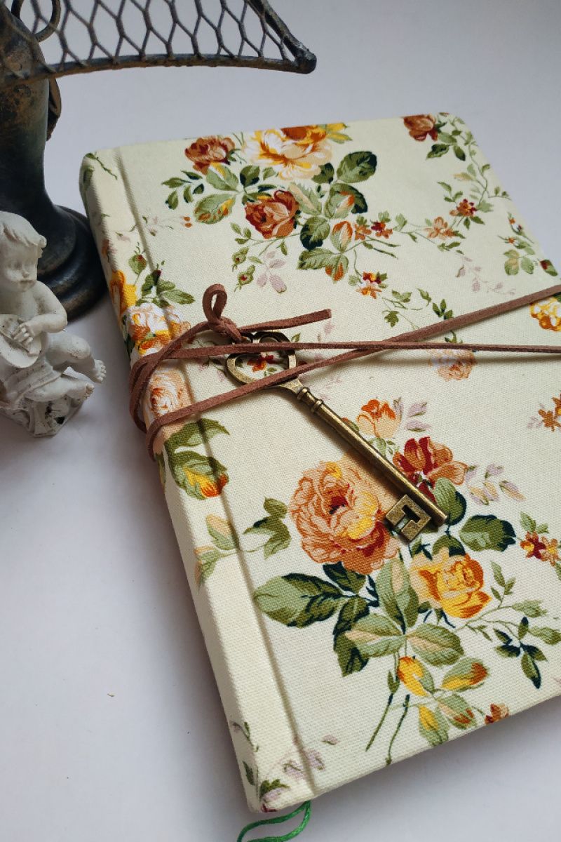 Блокнот формата а5 ( размер стандартного ежедневника ). Странички в полоску нежный пастельных цветов, внутри разделители с американской плотной бумаги куда можно вклеить Ваше фото. Обложка обтянута плотным американским хлопком. Блокнот закрывается на замшевый шнур с подвеской ключом.