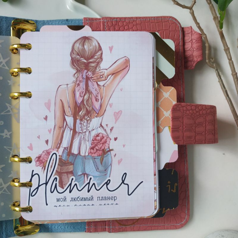 В комплекте идут карточки и скрепки. Планер на кольцевом механизме розового золота.