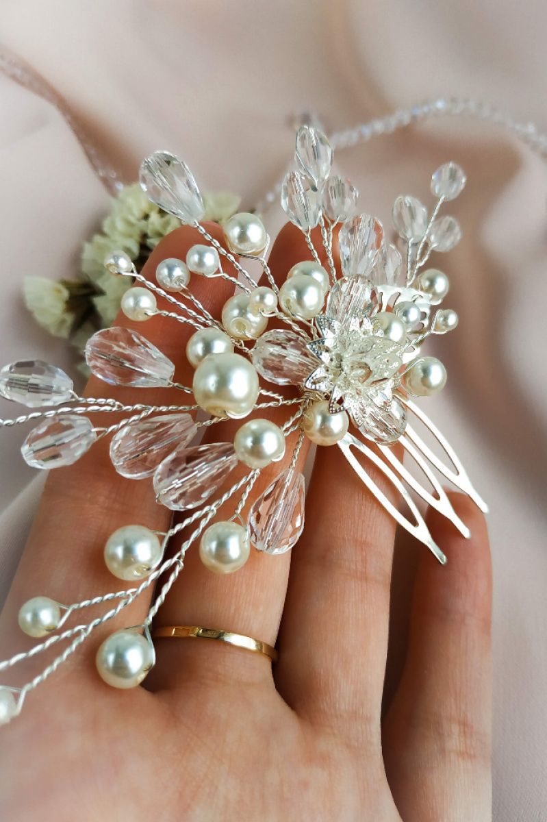 Універсальний варіант прикраси, який підійде для низьких пучків, текстурних зачісок, грецьких кіс, мальвінок, зачісок з локонами заколеним з одного боку і т.д.