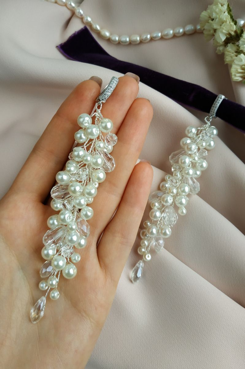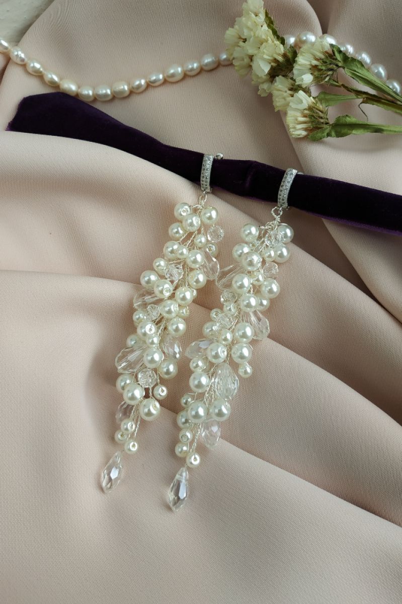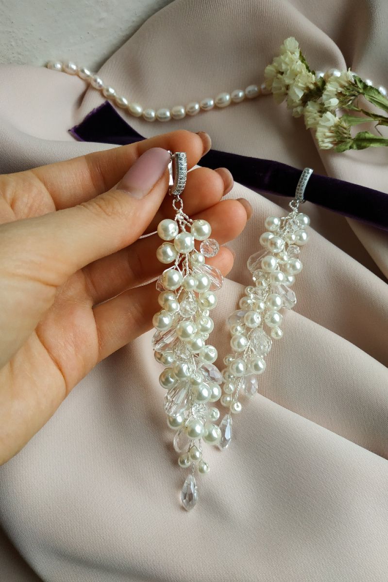 Такі сережки дуже люблять наречені, але вони також ідеально підійдуть для багатьох святкових образів, на фотосесії, на подарунок.