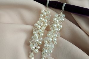 Виготовлені з застібки з фіанітами, кришталевих і перлинних намистин, ювелірної англійської дроту.