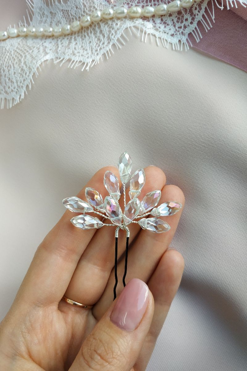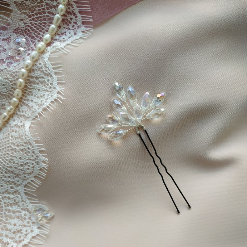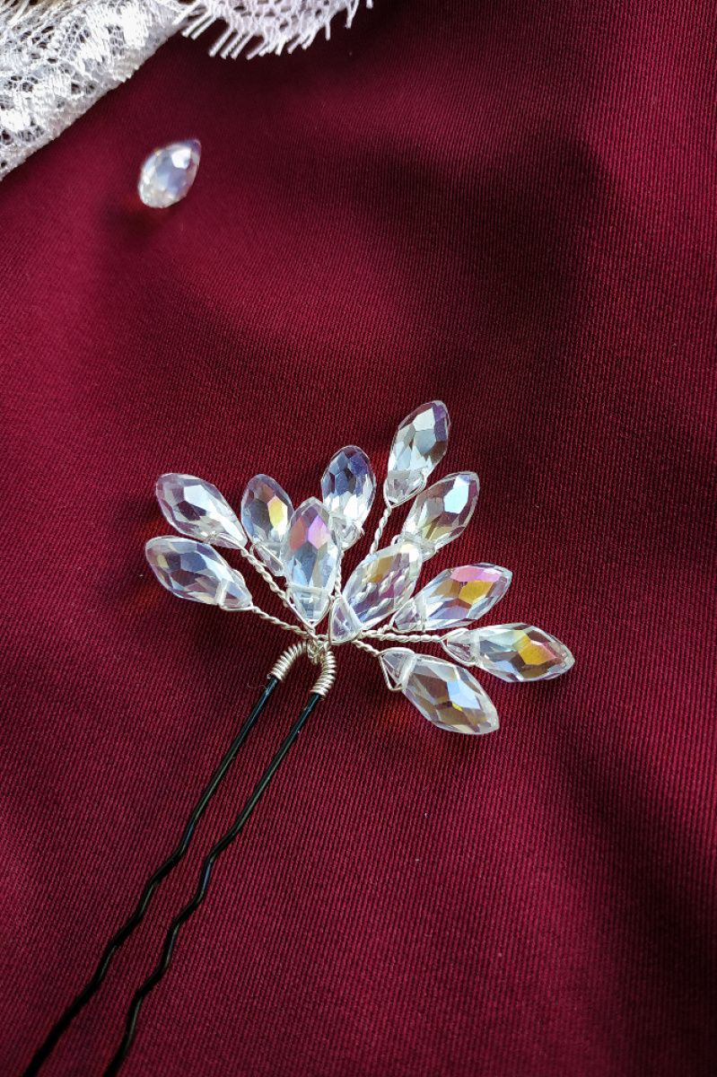 Виготовлена з кришталевих намистин, ювелірного англійського дроту із захисним покриттям (не темніє).