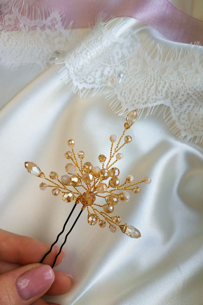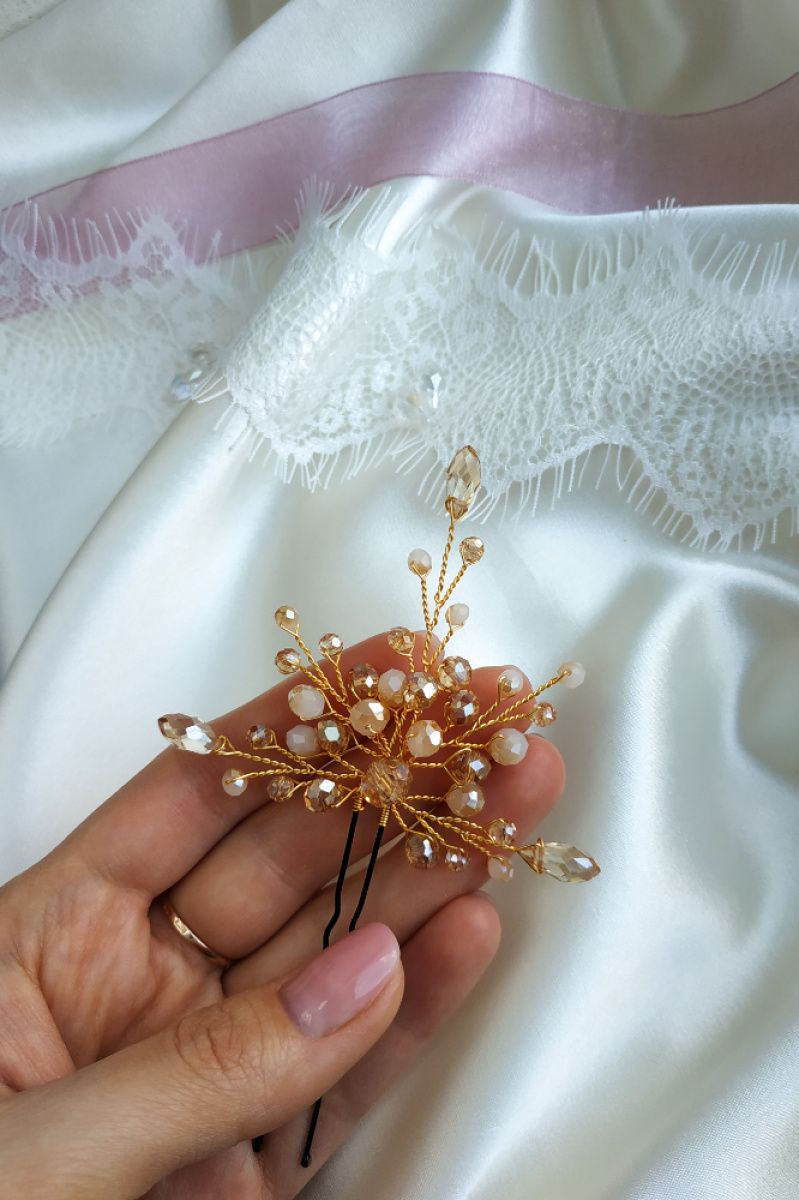 Виготовлена з кришталевих намистин, ювелірного англійського дроту з захисним покриттям (не темніє).