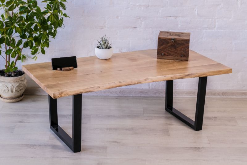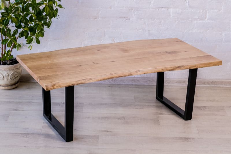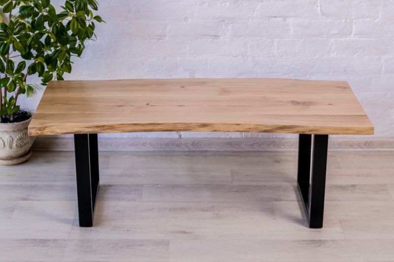 Качественный журнальный кофейный дизайнерский лакированный офисный лофт loft design live edge стол столик с металлическими ногами ножками из дуба сосны ореха в офис домой