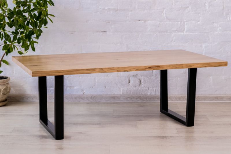 Качественный журнальный кофейный дизайнерский лакированный офисный лофт loft design live edge стол столик с металлическими ногами ножками из дуба сосны ореха в офис домой