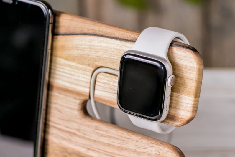 Деревянная беспроводная безпроводная настольная офисная мужская женская персонализированная с логотипом из дерева подставка докстанция док станция БЗУ для смартфона телефона iPhone Galaxy Айфон Apple AirPods наушников Samsung часов ручек ручки паспорта на рабочий стол