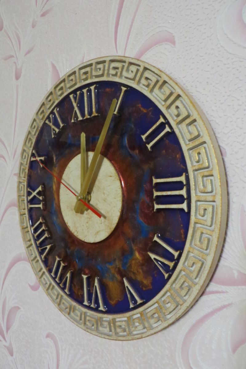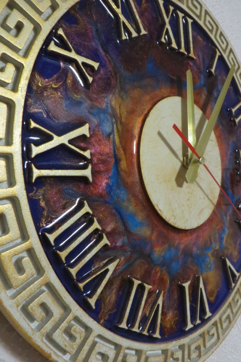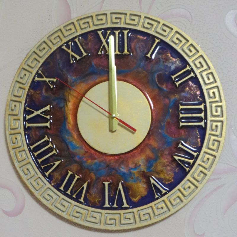 Настінний годинник дерев"яний ( матеріал мдф) оригінального дизайну, з епоксидною смолою, плавний хід,