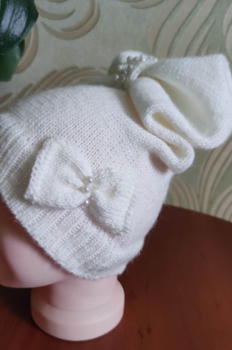 Шапка для дівчинки 2-4 років розмір 48-49.шапка пов'язана вручну з італійської змішаної пряжі альпака 30% з акрілом.демісезонная ..Не ЗИМА