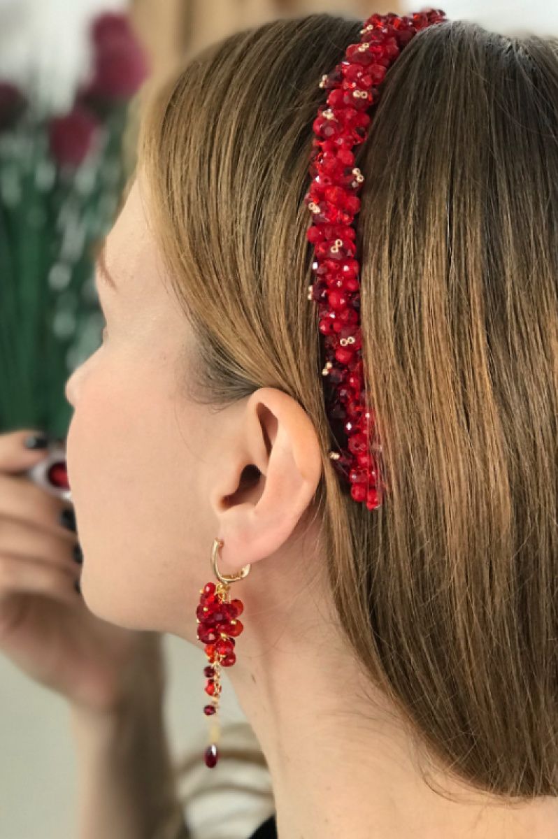 Неймовірної краси обруч, який дуже святково виглядає у волоссі. Можливо виготовити у будь якому кольорі