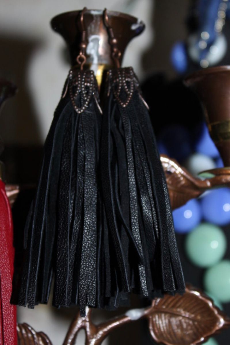ТРЕНД сезону, модний аксесуар Сережки пензлика з натуральної шкіри - чорного кольору (червоного, бежевого, коричневого кольору) стильні, модні, оригінальні. Гарний подарунок. Авторська ручна робота. Можу виготовити за індивідуальним замовленням, різної довжини # Довгий сережки, # сережки зі шкіри, # сережки пензлика, # шкіряні пензлика, # сережки кисті, # сережки кисті