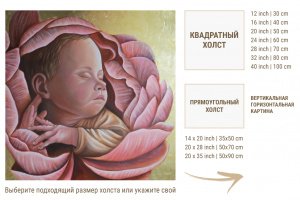 Картина на замовлення дитячого портрета або новонародженої дитини в квітковому мотіві з поталью.