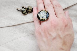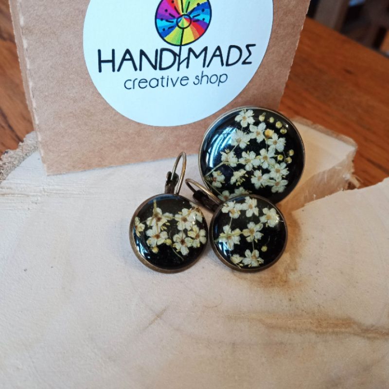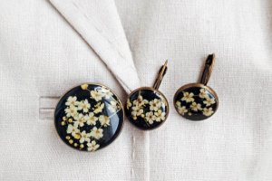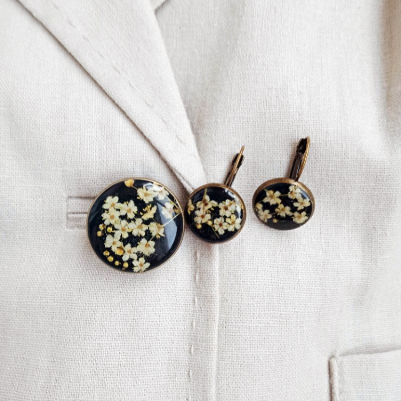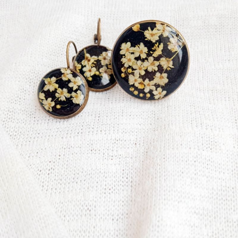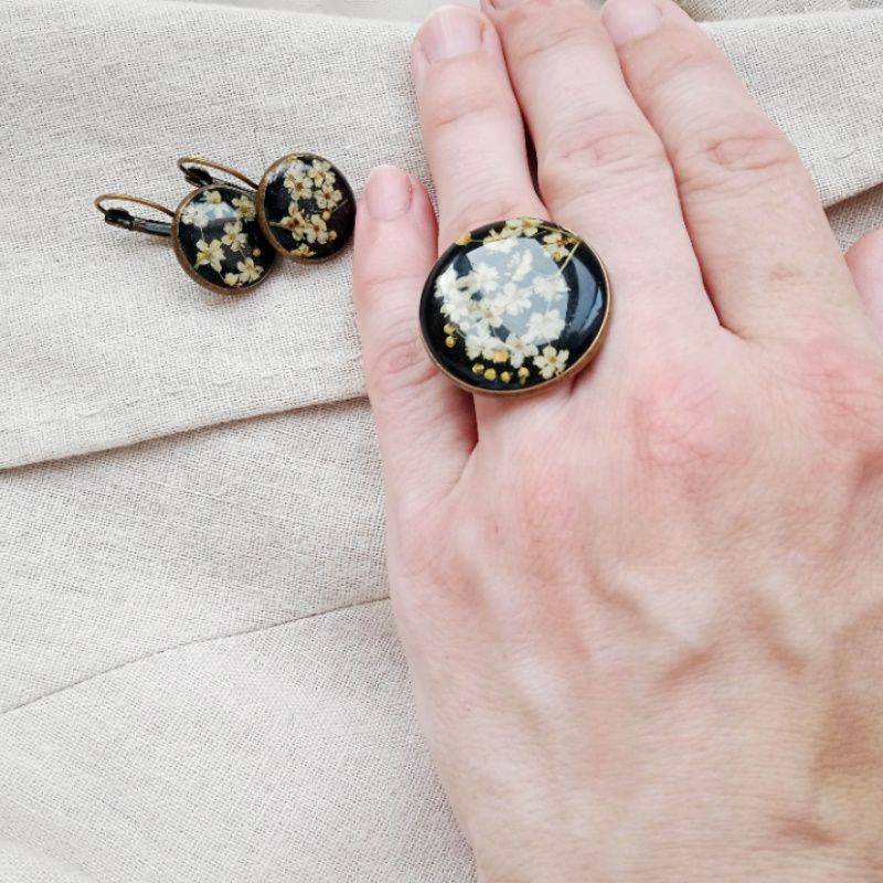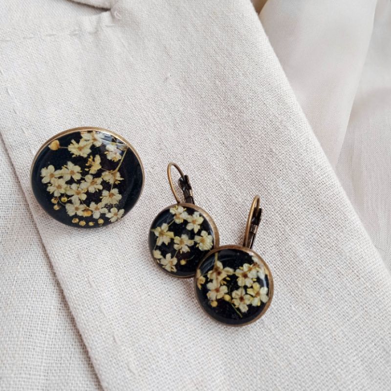 Колір антична бронза, ювелірна епоксидна смола,справжні сухоцвіти.