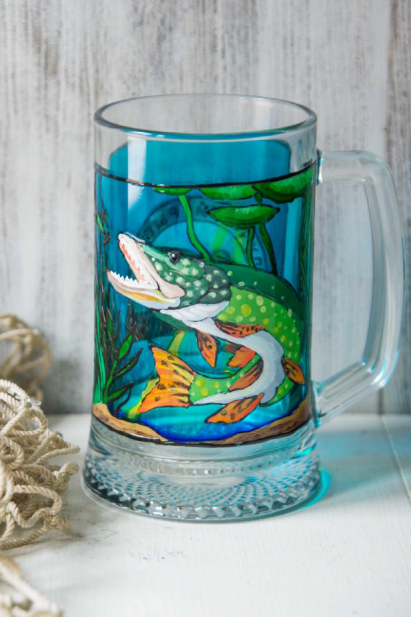 Пивний келих 'Кращий рибалка' це трендовий спосіб подарувати оригінальний чоловічий подарунок кращому другу, шефу або коханому чоловікові, стане також прекрасним подарунком любителю пива! Крім того, вишуканий аксесуар ручної роботи буде оригінальною прикрасою вітальні або кабінету. Пивний келих-ексклюзивна авторська робота, естетичний і практичний подарунок в самому трендовому стилі. Об'єм 0,5 л.