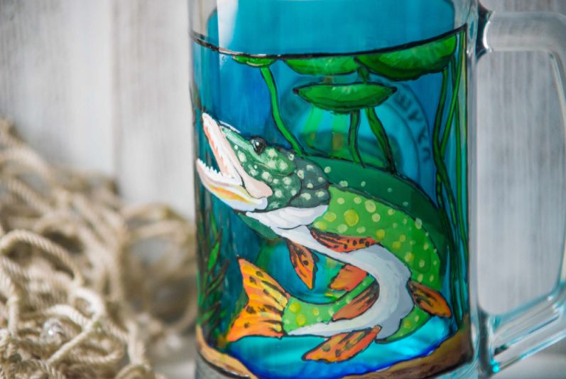 Пивний келих 'Кращий рибалка' виконаний фарбами по склу і кераміці. Фарби не змиваються і не вигорають. У декорі використаний міцний лак. Всі матеріали абсолютно безпечні для вашого здоров'я.