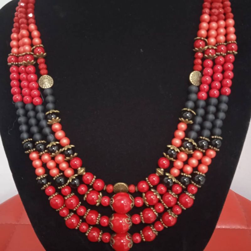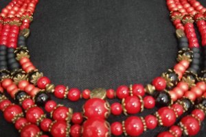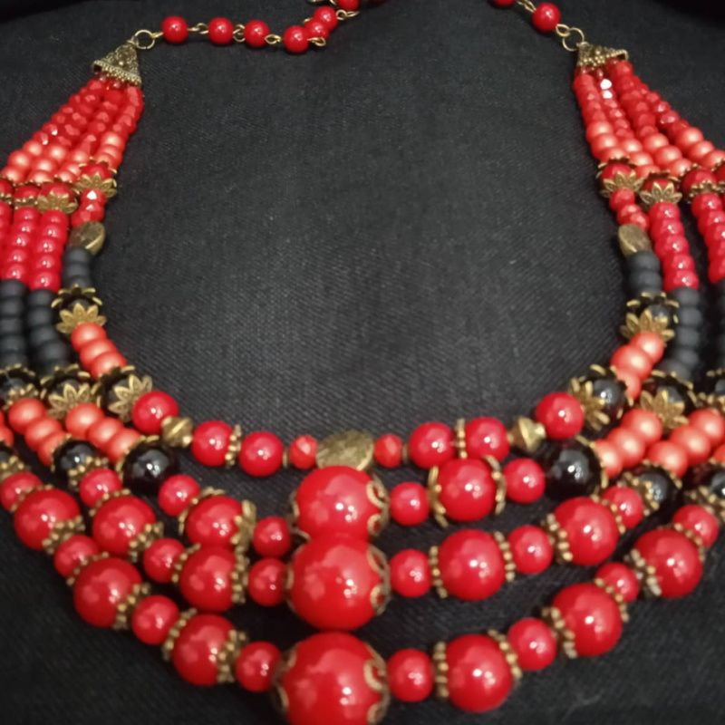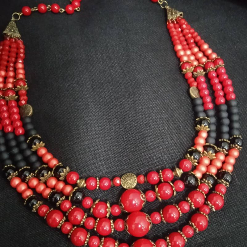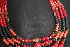 Етно намисто ручної роботи. Виготовлене з червоних та чорних намистин та мідної фурнітури.