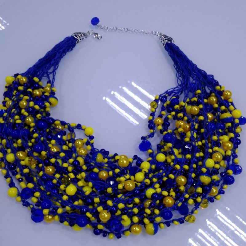 Пропонуємо Вам яскраве намисто ручної роботи "Ukrainian" виготовлене в етностилі. Прикраса сплетена з намистин різної форми та розміру. Яскрава прикраса в національному стилі чудово підійде до української вишиванки, будь-якого плаття чи сорочки. За рахунок універсального дизайну прикраса гарно доповнить класичний образ, доповнить стиль кежуал, та ідеально підійде до етнічного наряду.
