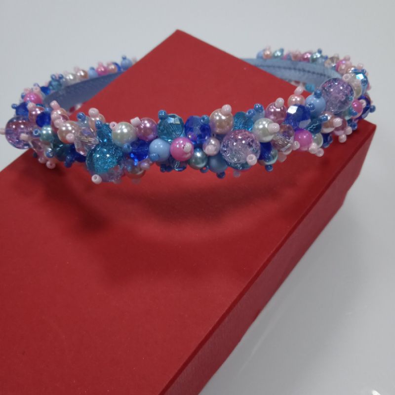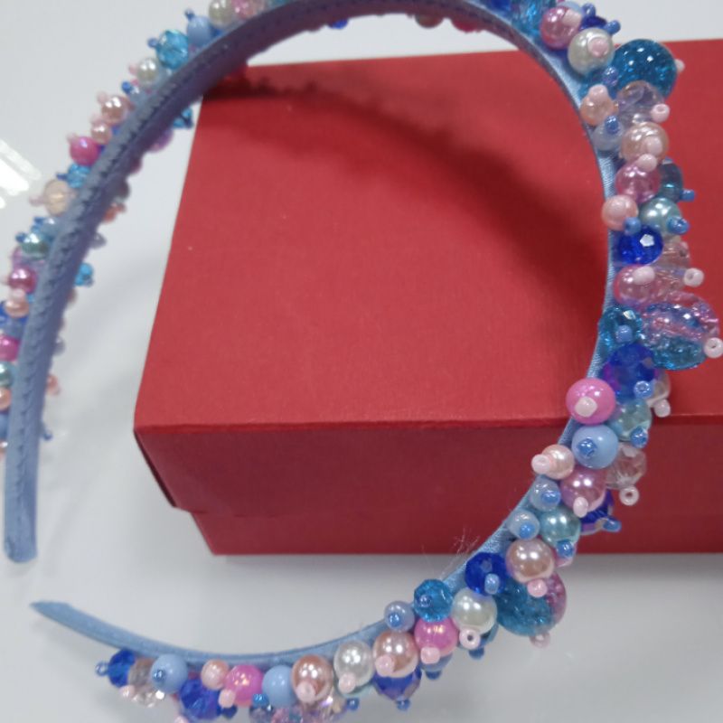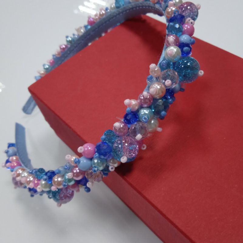 Обруч для волосся з камінням і намистинами в блакитно рожевих тонах. Розмір універсальний Ширина 2 см
