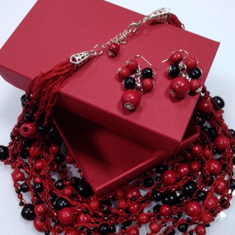 Червоне українське намисто в етностилі. Буси виготовлені з дерев'яних намистин і міцних натуральних ниток. Довжина 56 см подовжувач 8 см. В комплект можна замовити браслет і сережки в тому ж стилі.