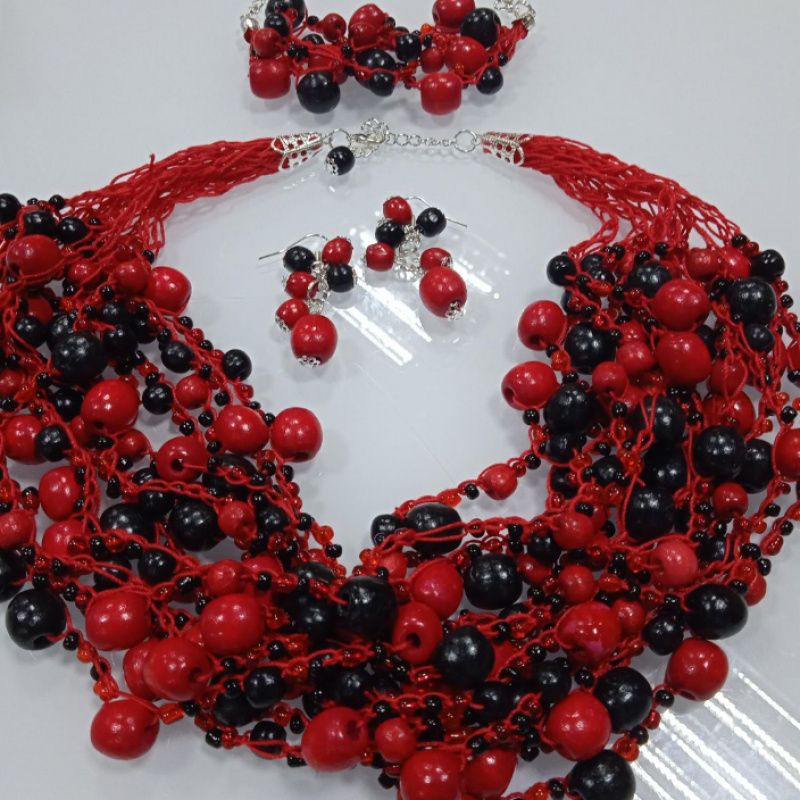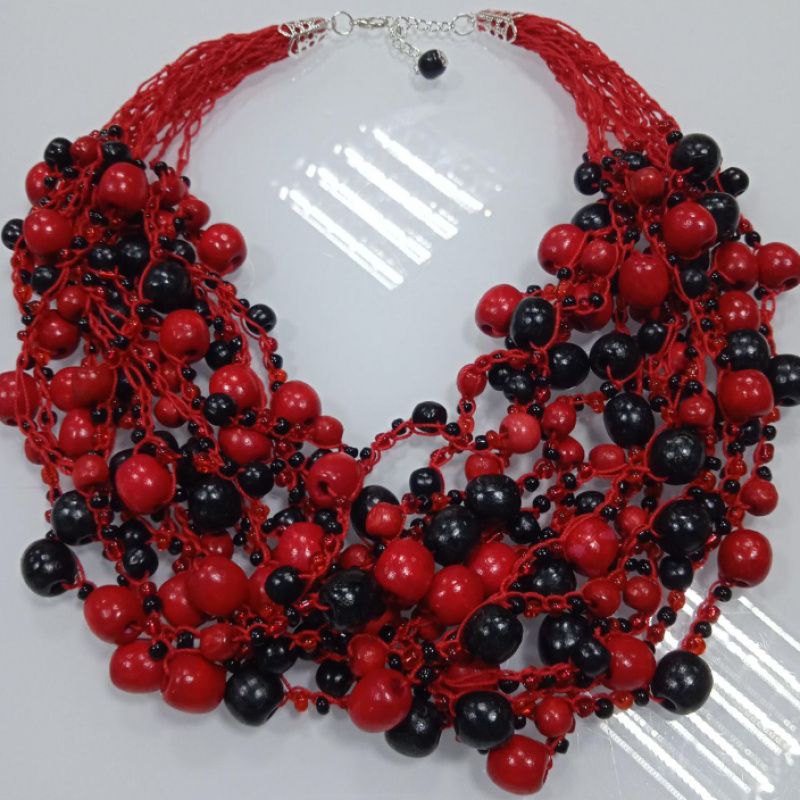 Пропонуємо Вам яскраві буси ручної роботи, сплетені з дерев'яних намистин в етностилі. Намисто ідеально підійде до українського етнічного наряду, а також чудово прикрасять класичний образ.