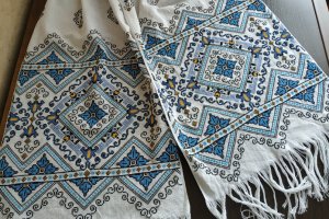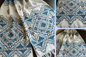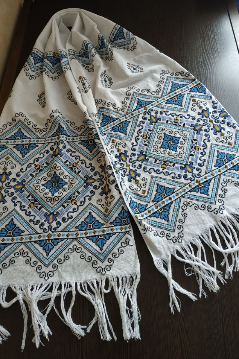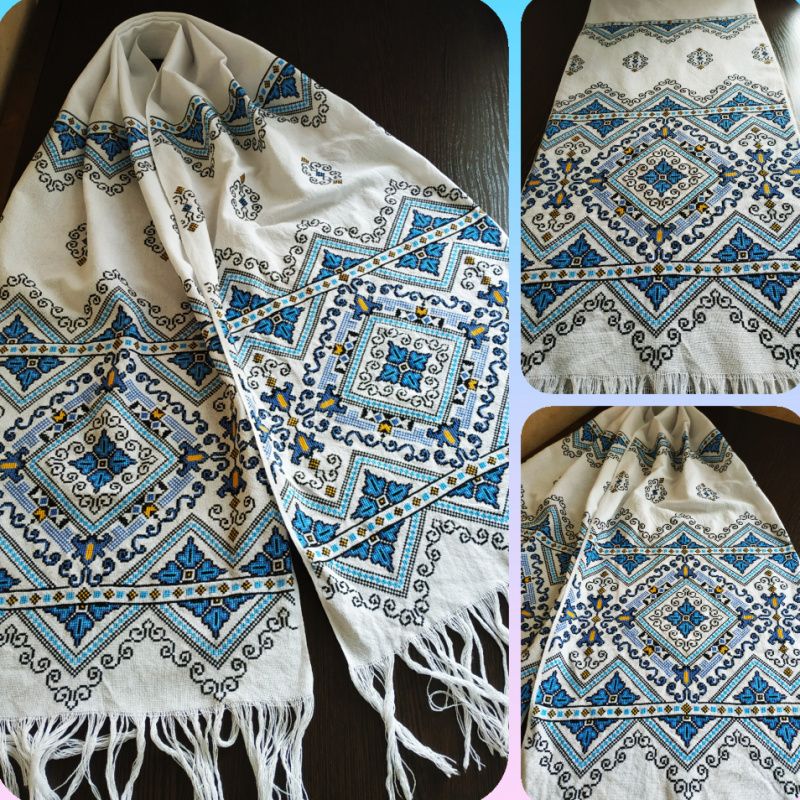 Неповторний вишитий рушник з геометричним орнаментом ручної роботи .