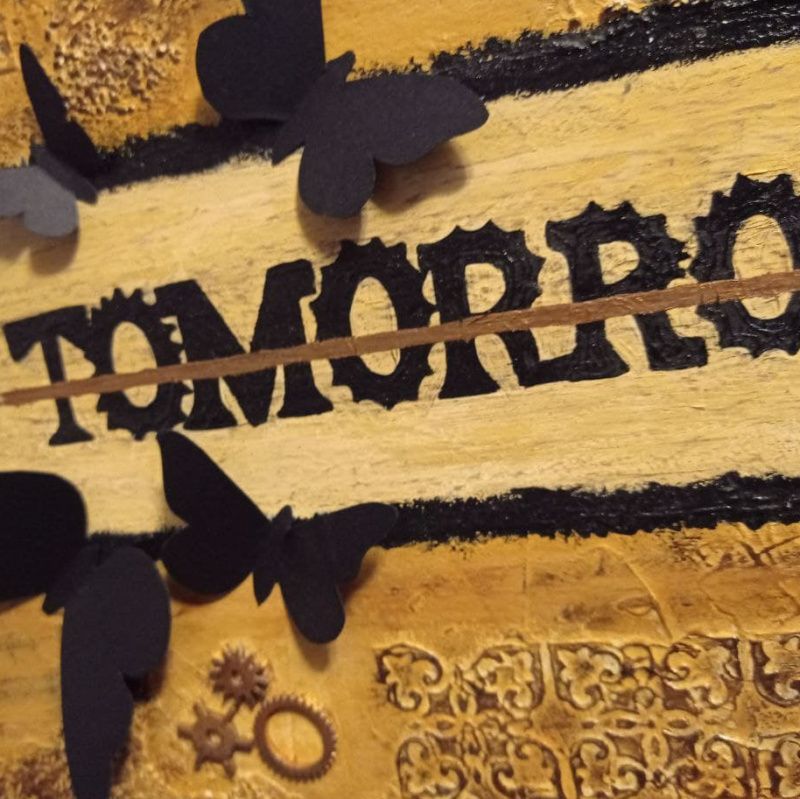 Картина mix media в стилі стімпанк. Полотно на картоні, 30 * 80 см, акрил з використанням структурних паст, декупажу, декоративних елементів. Виглядає яскраво і интерьерно. Покрита лаком, край забарвлений.