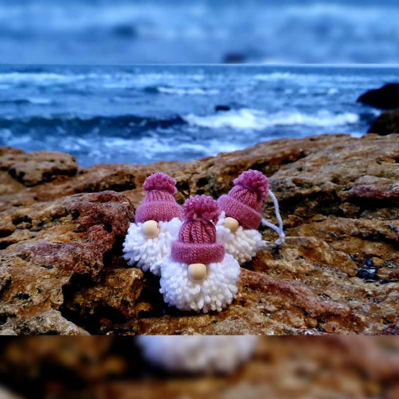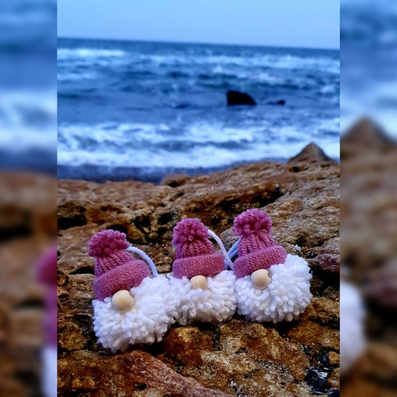Новорічні прикраси на ялинку гномики в рожевих шапочках)) Набір з 3 шт