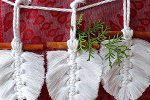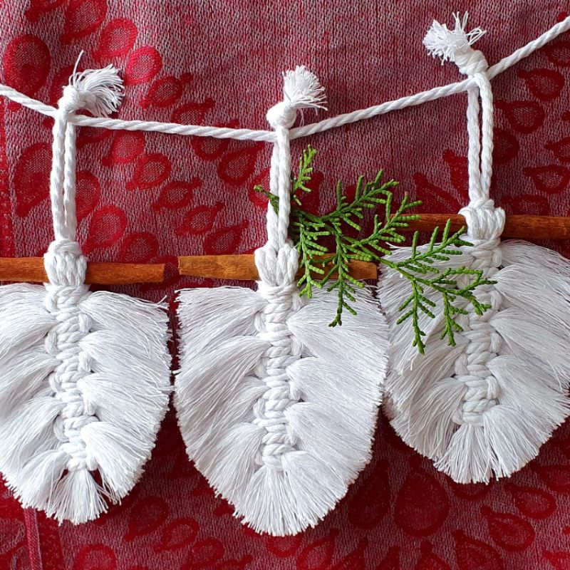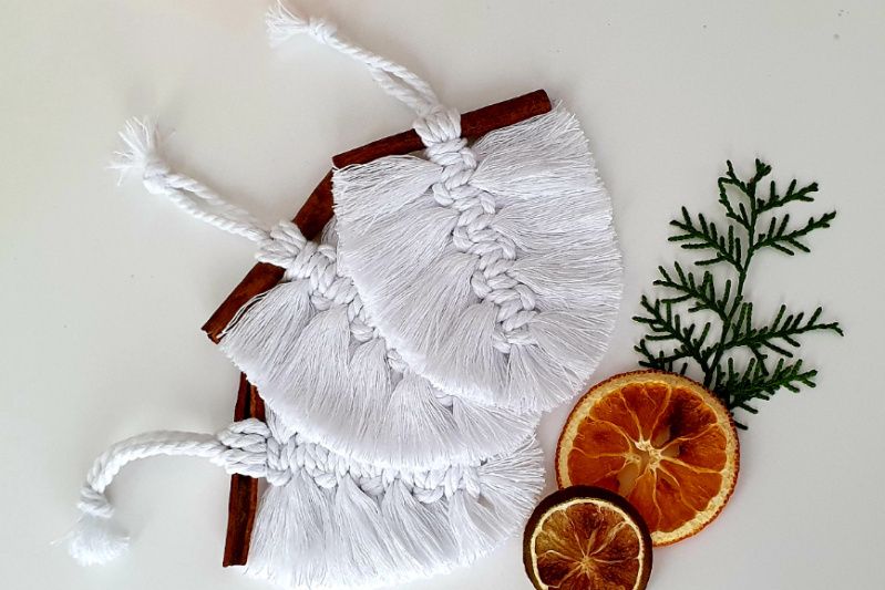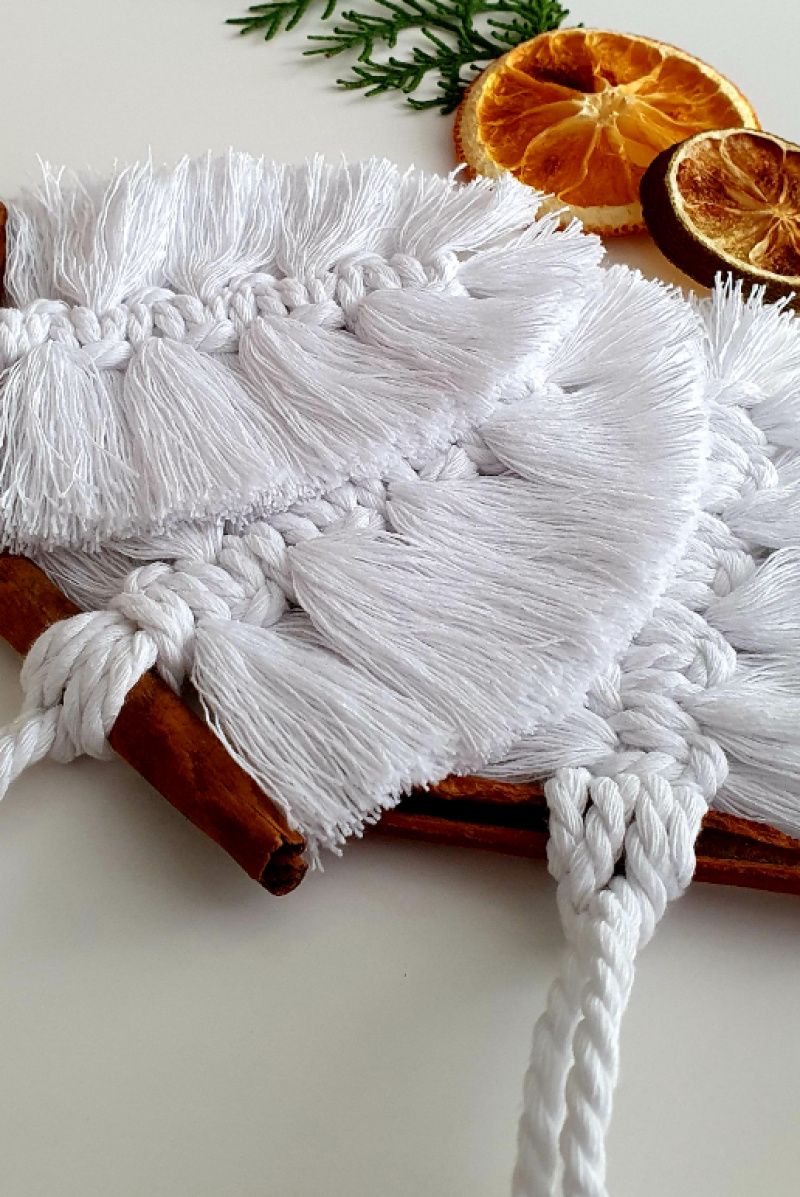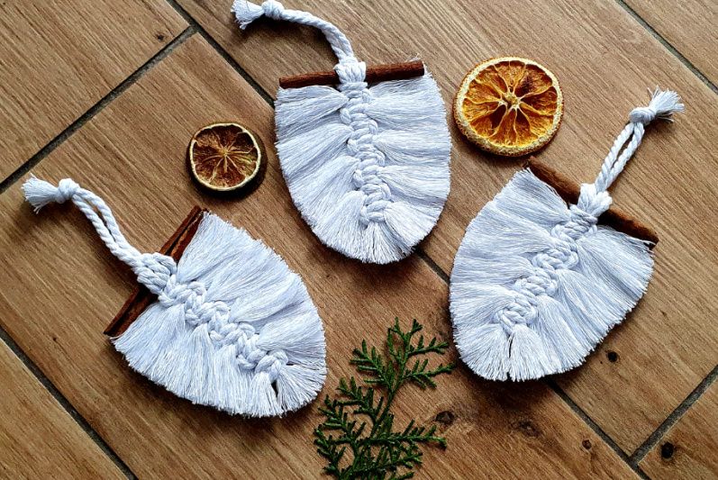 Новорічні прикраси на ялинку, виконані в техніці макраме. Набір із 3 шт