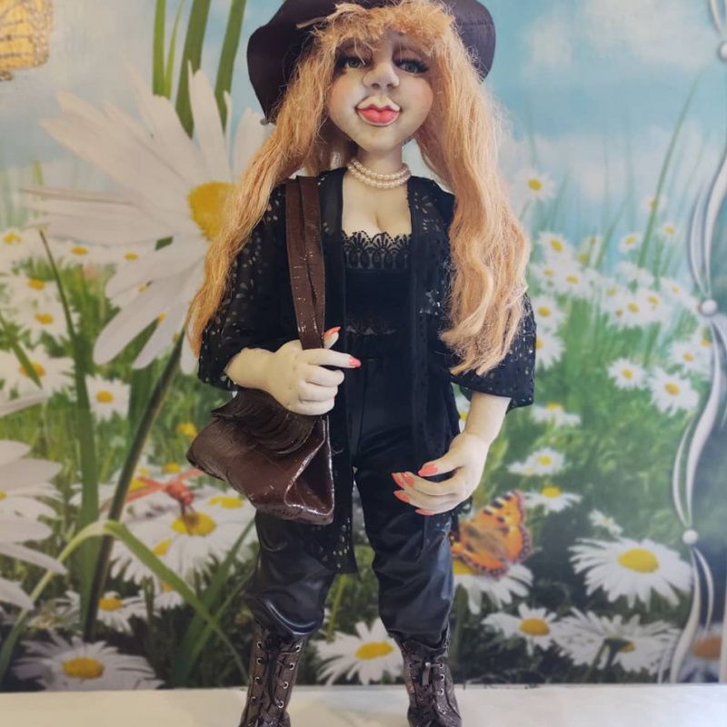 Робота Іщук Світлани. Авторська каркасна лялька Арлет виконана в техніці текстильної скульптури. Висота ляльки 105см. Варто самостійно або з опорой- залежить від обраного місця в інтер'єрі. Лялька зроблена в єдиному екземплярі і може бути неповторним подарунком на будь-яке свято. Лялька не роздягається. але додаткові аксесуари можуть як доповняться так і змінюватися за бажанням власника. На даному етапі у ляльки сумочка на перевагу на плечі коричневого цвета..Для оформлення інтер'єру офісу, магазину, ательє та тематичних форумів і класів дана лялька підійде як ніхто інший. За відгуках моїх замовників можу з упевненістю сказати. що присутність подібних інтер'єрних ляльок в навчальних аудиторіях, кафе і піцеріях викликає у відвідувачів бажання зайвий раз прийти в дане приміщення. Що в свою чергу збільшує відвідуваність клієнтів.