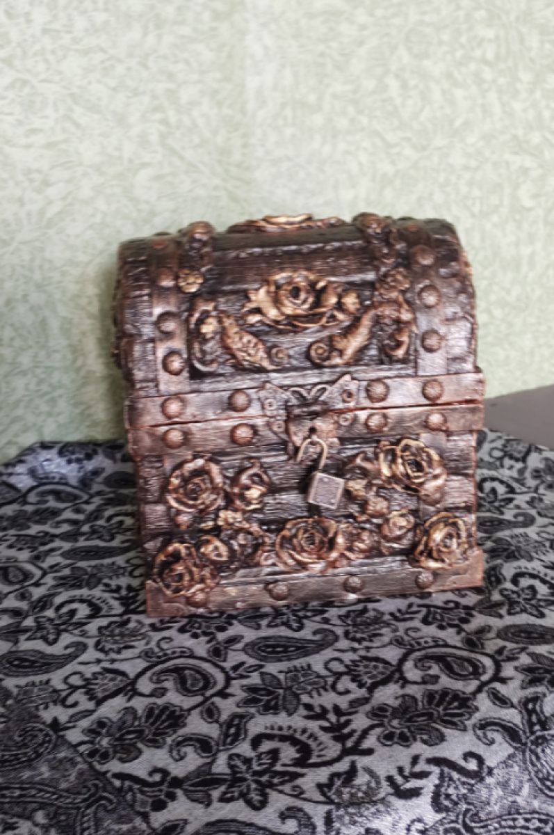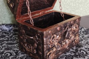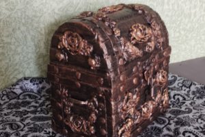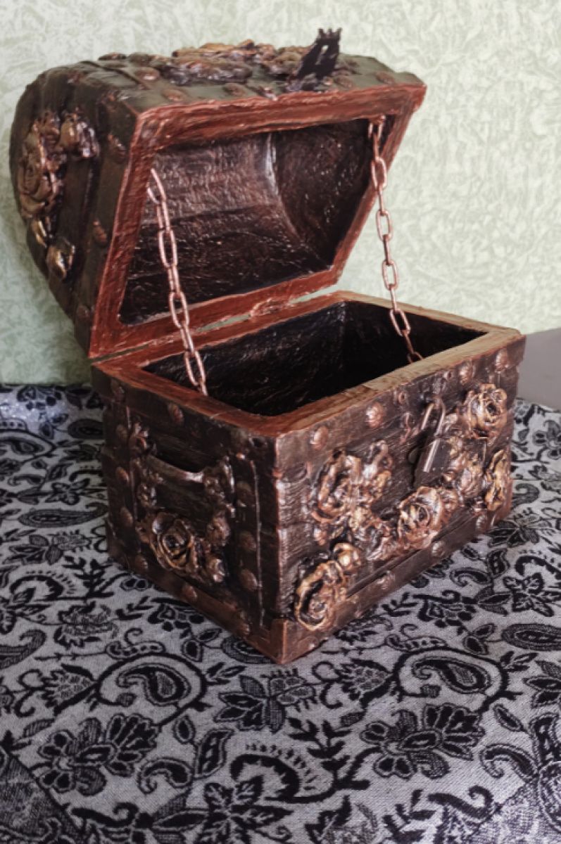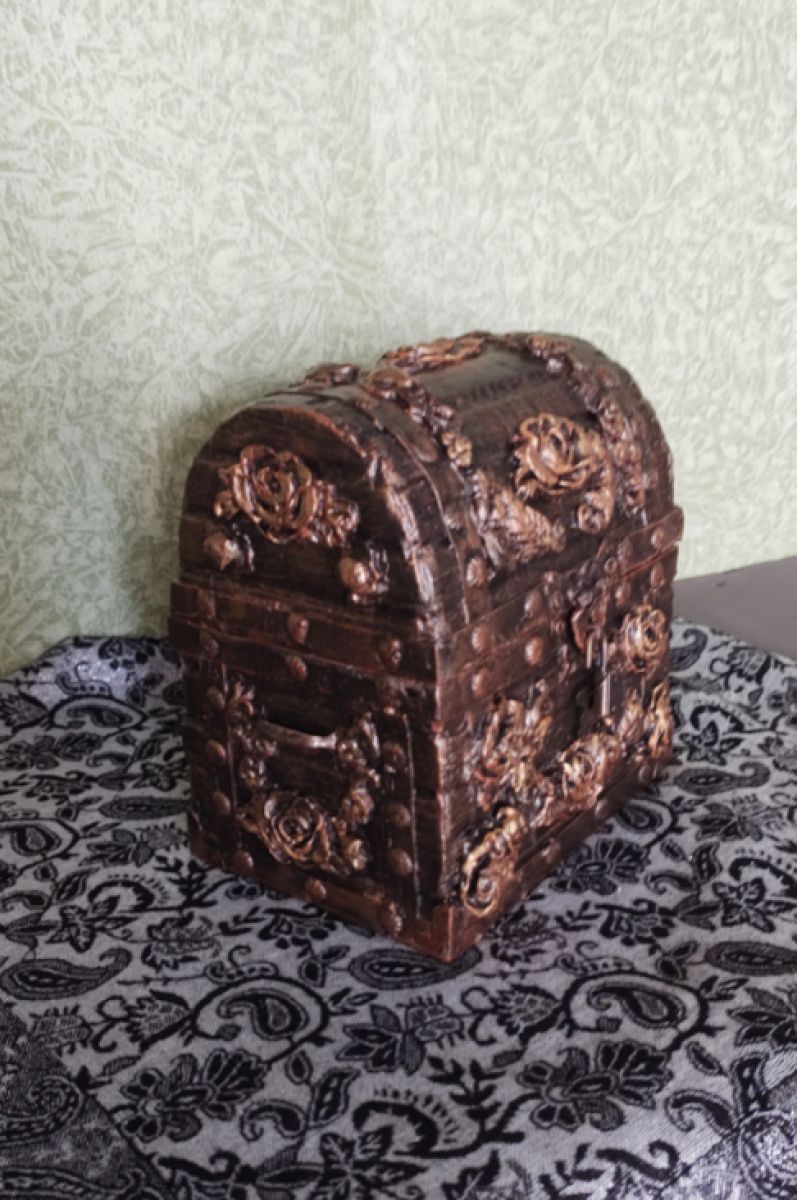 Скринька з картону 'Бронзовий вік' Невелике доповнення до інтер'єру будинку. подарунок на будь-яке свято. Золоті скарби звичайно в ньому не варто зберігати, але особисті цінні дрібниці дуже вдало помістяться на дно красивого скриньки.