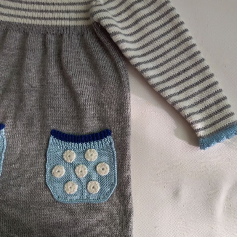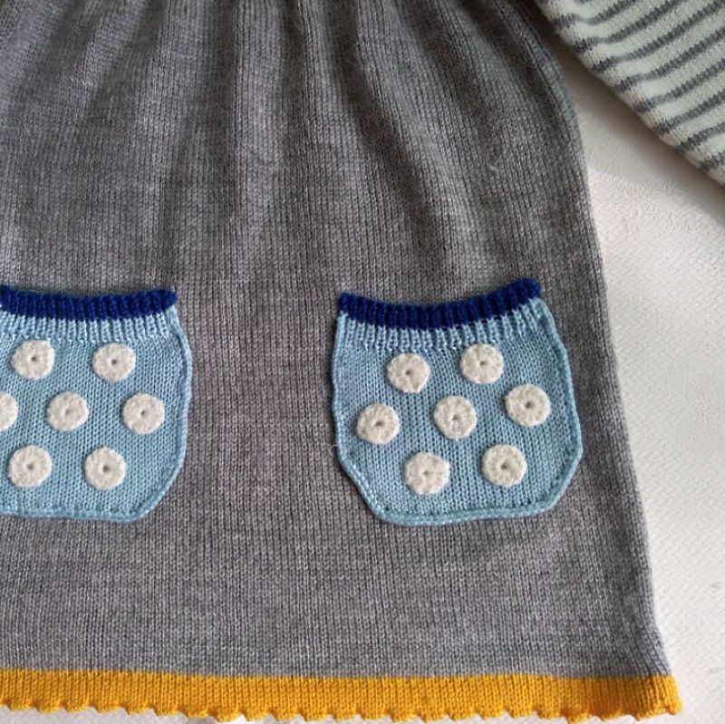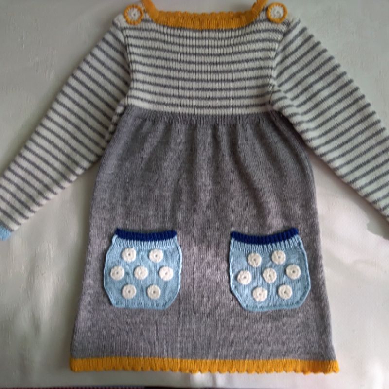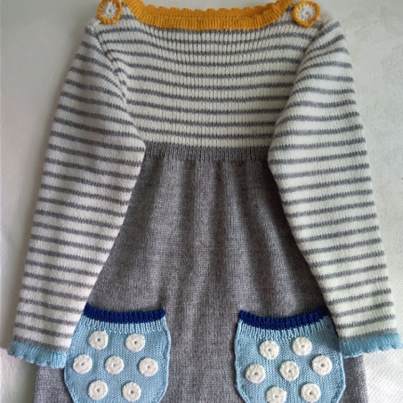 В'язане спицями дитяче платтячко з "веселими" кишеньками з м'якої напіввовни на дівчинку 3-х років рост -110см. Платтячко цікавої модельки, відмінно підійде як для дитсадка, так і інших подій