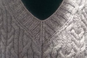Жилет спицями рельєфним візерунком із ангорової пряжі.