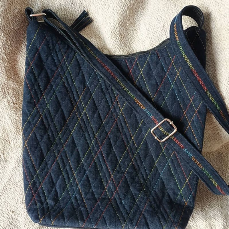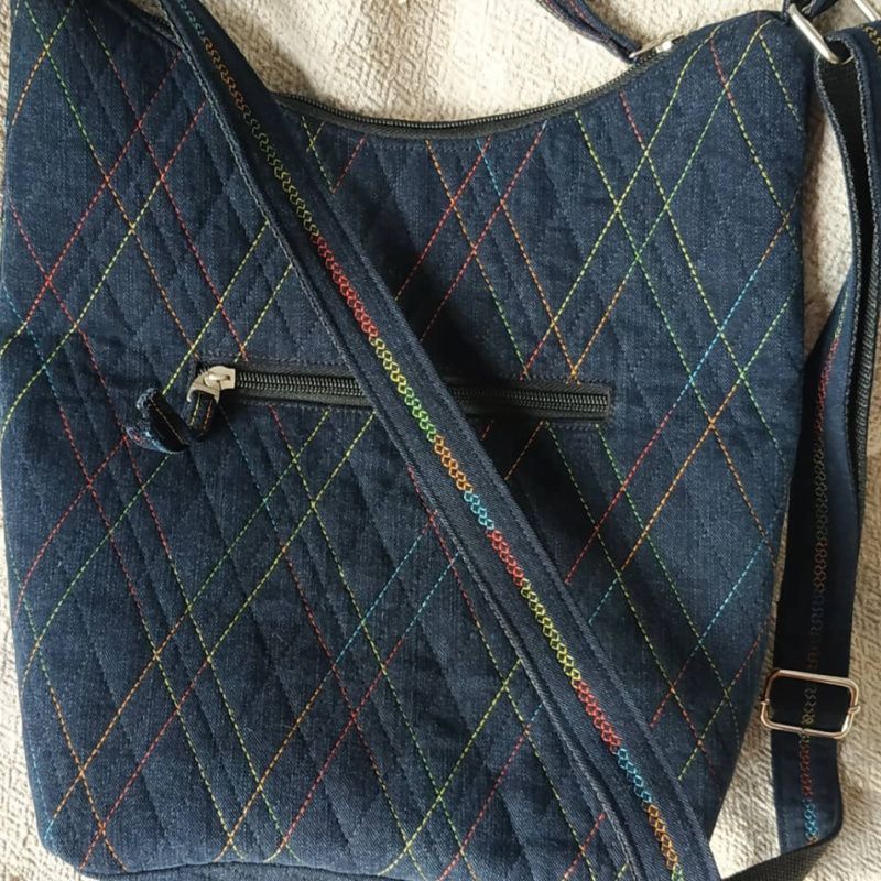 Джинсова сумка зі стібкою меланжевою ниткою. Сумка дуже легка та зручна. Розмір 31 * 28 * 9, довжина ручки регулюється. Усередині чотири кишені, одна з них на блискавці плюс кишеня на сумці.