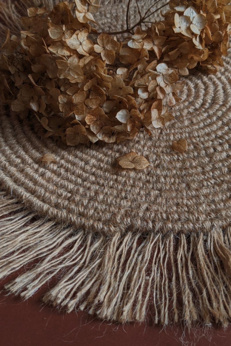 Джутовая підставка Діаметр - 28 см (з ниточками ~ 40 см) Підставки можна використовувати під: - чашки / тарілки; - вази; - прикраси; - статуетки; - косметику; - мило; - вазони / горщики / баночки; - під якісь свої особливі штуки))) Можливе виготовлення за індивідуальними ескізами, будь-яких речей, будь-яких розмірів і товщини.