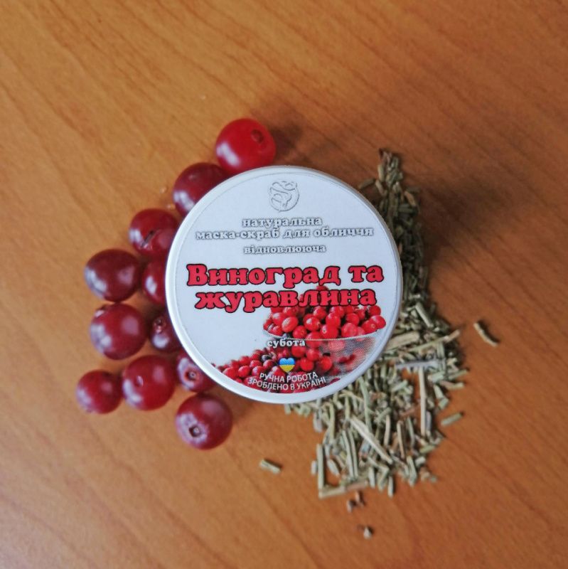 Маска-скраб на основі натуральних рослинних олій та інших натуральних складників рослинного походження. Містить абразив виноградних кісточок та екстракт журавлини. Розгладжує мікрорельєф шкіри, суттєво підвищує пружність та балансує себовиділення. Рекомендовано для всіх типів шкіри, ідеально підходить для зрілої, схильної для жирності, проблемної та комбінованої типів шкіри. Перед першим використанням обов’язково зробіть алергічну пробу на згині ліктя (!)