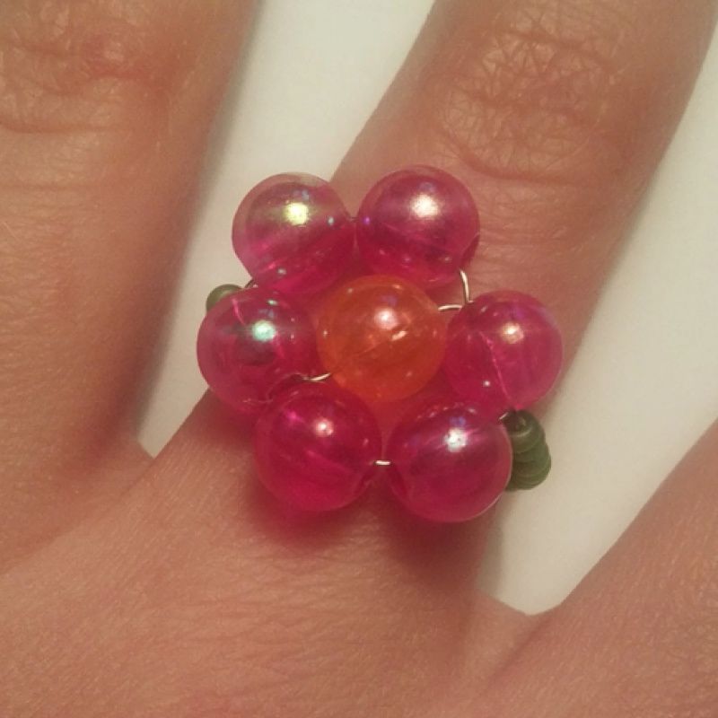 Кільце з квіточкою, зроблене з якісного чеського бісеру, та намистин. На міцній дроті. Розмір на замовлення. Виглядає дуже красиво та сучасно.