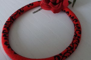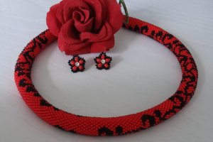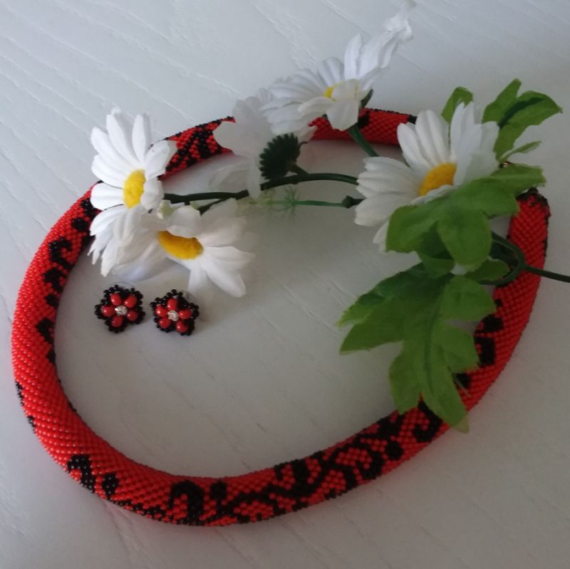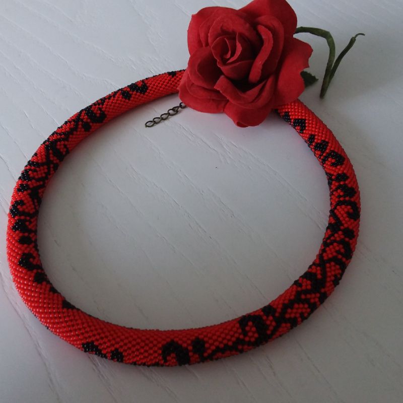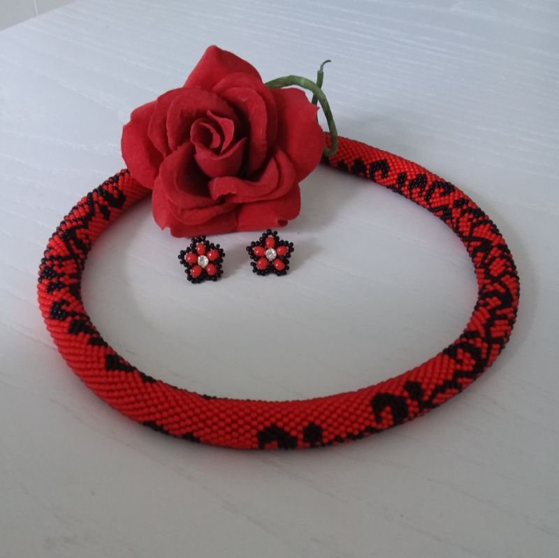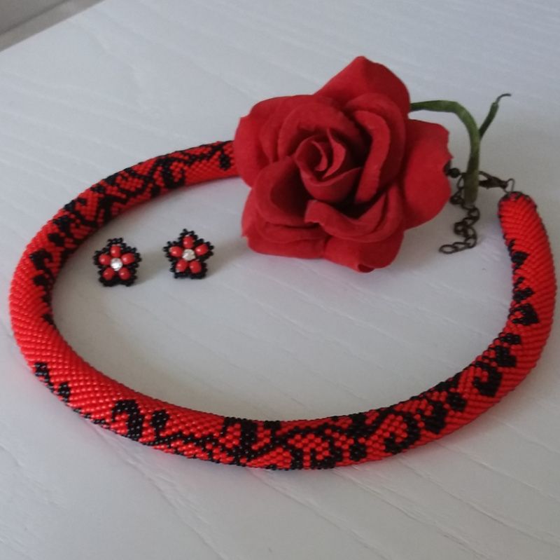 Джгут виготовлений з чорного та червоного чеського бісеру. В такій прикрасі Ви будете себе відчувати привабливою та впевненою. Довжина джгута 47 см, є ланцюжок-подовження. Діаметр 15мм. Додатково можливо придбати сережки. Замовляйте та носіть з задоволенням!