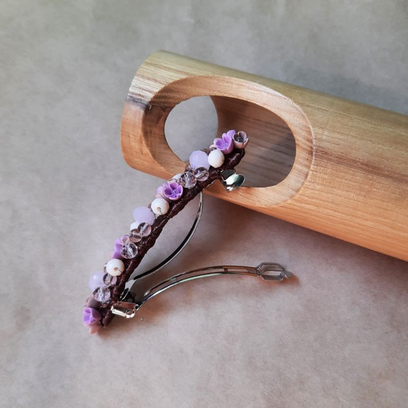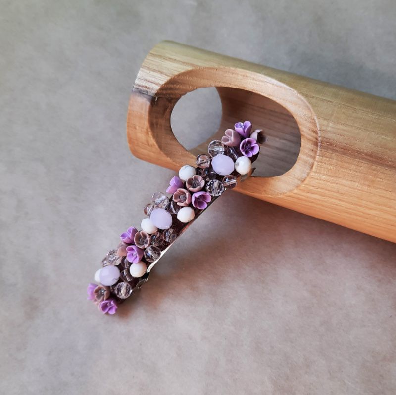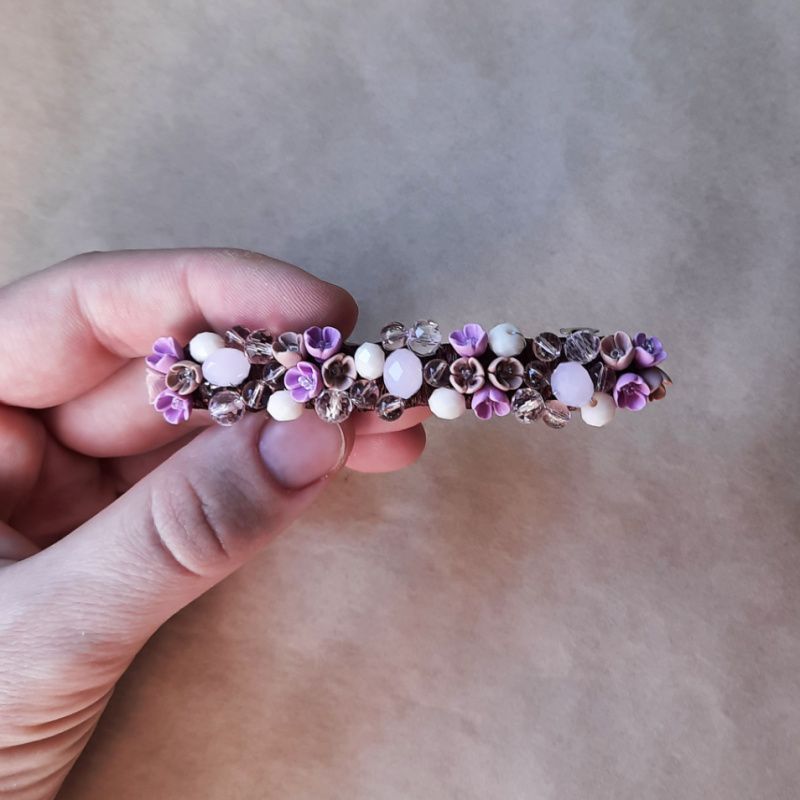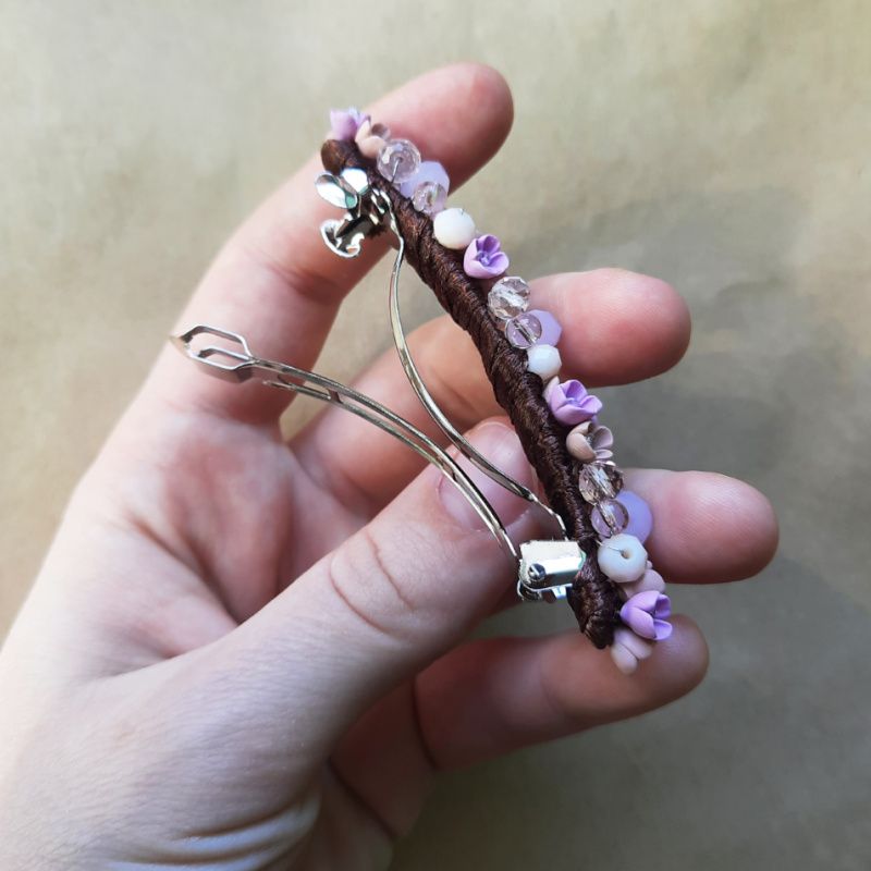Шпилька з мініатюрними квітами ручної роботи з полімерної глини. Поєднання полімерної глини, скляних індійських намистин і скляних кришталевих намистин. Довжина квіткової основи - 8 см
