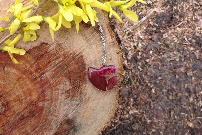 Кулон ручної роботи Пеларгонія виконаний зі справжніх рослин, а також ювелірної епоксидної смоли.